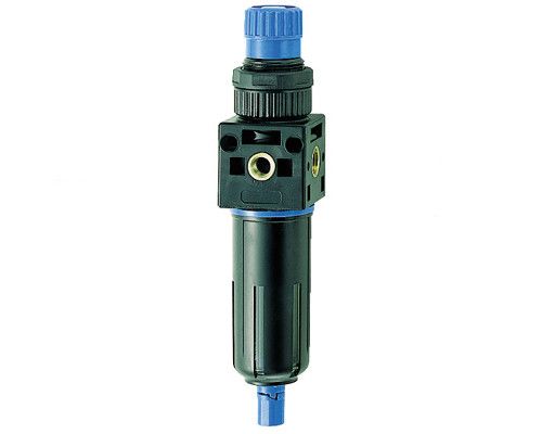 Фильтр регулятор конденсата с фильтрующим элементом 20 мкм в специальной прочной колбе и редуктором с фиксируемым регулятором давления.